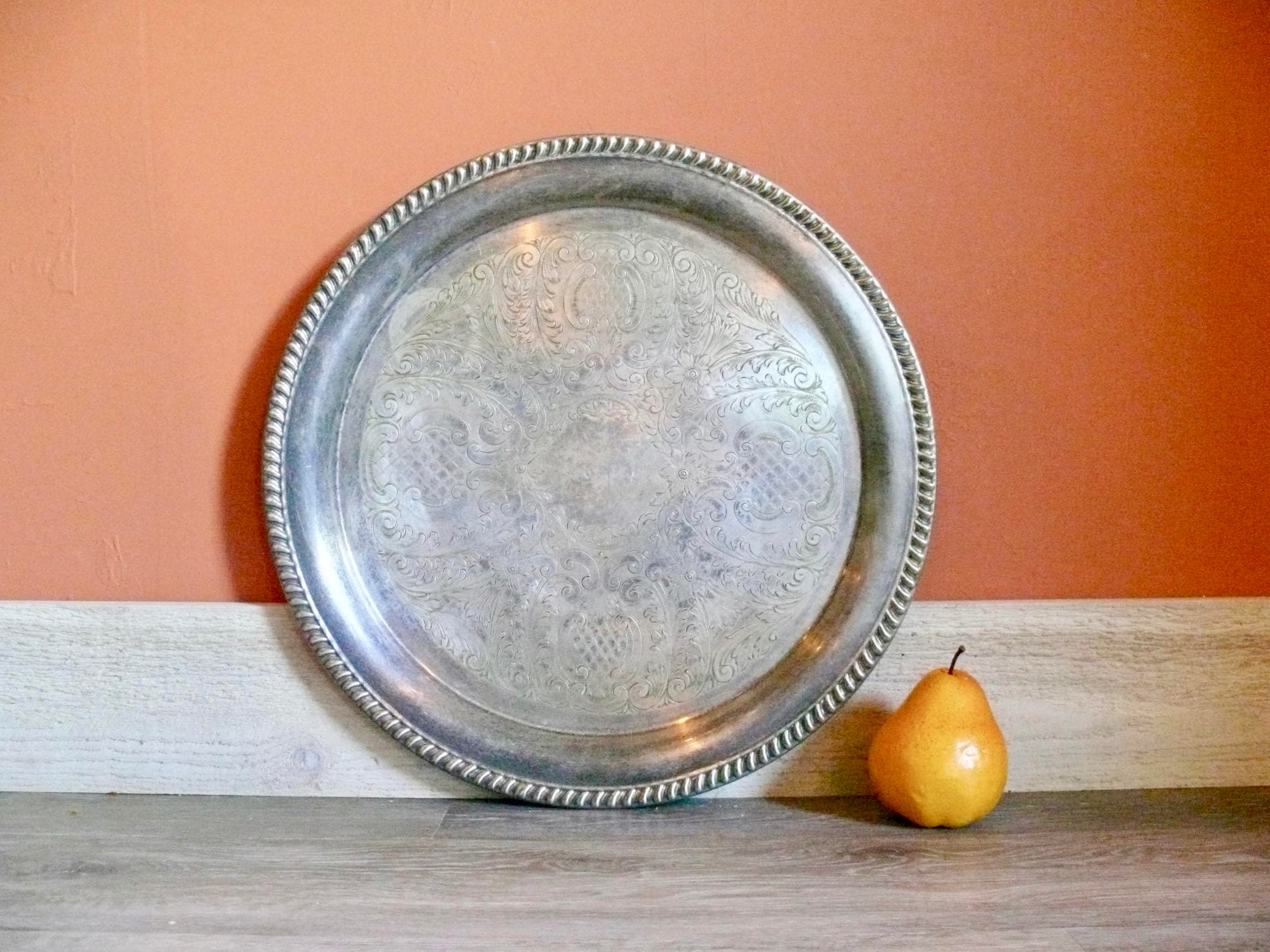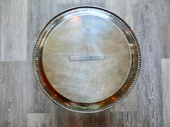 Round 16 Sheridan Silver Etched Serving Tray With Floral Etsy